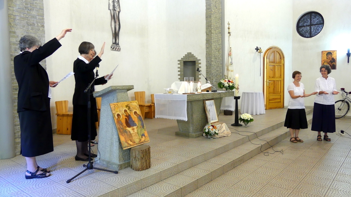 Tartományi lelkigyakorlatunkat követően augusztus 1-jén a reggeli imaóra, a laudes keretében megünnepeltük új fogadalmas nővérünk, M. Sára nővér tartományi befogadását, majd a szentmisében 60, 50, 30, 25 és 20 éves jubiláns nővéreinkért imádkoztunk.