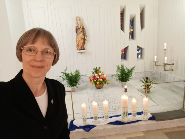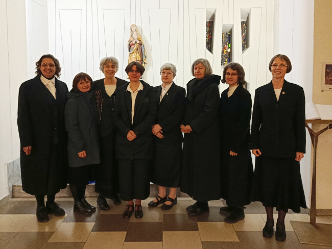 Köszöntöm a Boldogasszony Iskolanővérek nagy családját: nővérközösségeket, társult tagokat, munkatársakat, egykori és jelenlegi diákjainkat, barátainkat! 2025. szilveszter napján a választókáptalan tagjai – Roxanne Schares nővér elnökletével - meghívtak az elöljárói szolgálatra. 2026. január 24-én a Magyar Tartomány nővérei megáldottak, majd február 1-jén Münchenben, alapítónk, Boldog Terézia anya sírjánál a többi európai elöljáróval együtt megkaptam a hivatalos kinevezésemet. Kérem, hogy imádkozzanak értem és a rám bízottakért! Én is szeretettel imádkoztam mindnyájukért Terézia anyánál.