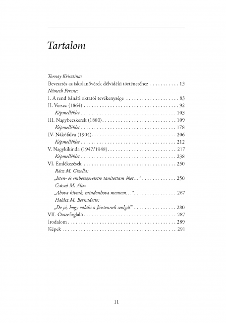 Dr. Németh Ferenc művelődéstörténész, a szabadkai Magyar Tannyelvű Tanítóképző Kar tanára, maga is a nagybecskereki iskolanővérek hálás tanítványa, hosszú évek kutatómunkájával gyűjtötte össze az egyes rendházak - Versec, Nagybecskerek, Nákófalva, Kikinda - történetét és kiegészítette a ma élő idősebb iskolanővérek személyes emlékezéseivel.