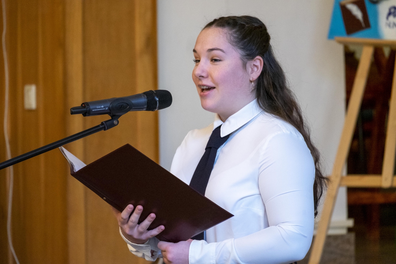Mezei Adél kollégista társai nevében mondott köszönetet a támogatásért, mely lehetővé tette, hogy megújult környezetben éljenek és tanuljanak. Beszélt arról, milyen egyszerre védelmező és kibontakozást segítő közeget jelent számára a kollégium, hogyan segítik hozzá az itt kapott értékek és a közösség a diákokat, hogy Isten segítségével és a maguk szorgalmából keresztény értelmiségi nővé érjenek.