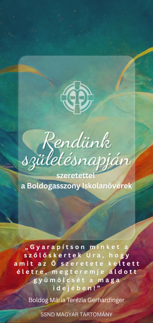Meghívjuk kedves barátainkat, hogy ünnepeljenek velünk: adjunk hálát együtt alapítónk és az előttünk járó iskolanővérek életéért, és kérjük bizalommal a folytatást!